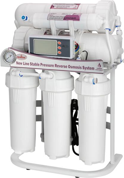 KRAUSEN New Line B+ 800 Stable Pressure LCD egy direkt átfolyós, fordított ozmózis technológiájú víztisztító berendezés. Nyomásfokozó szivattyúval ellátott verzió, melynek köszönhetően alacsony vagy ingadozó bejövő víznyomásnál is megfelelően és a lehetőségekhez mérten gazdaságosabban üzemel, mint egy szivattyú nélküli verzió.